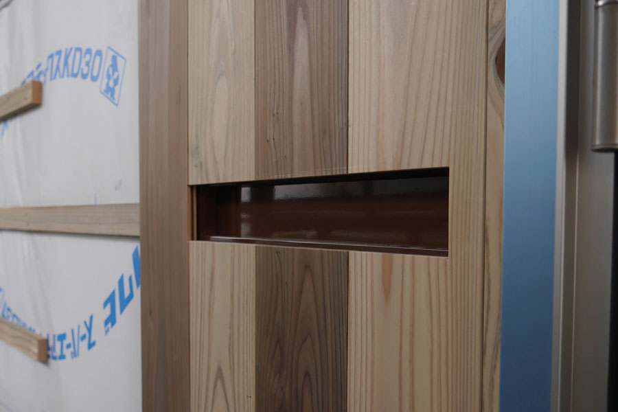 覗き窓ではなく、郵便ポストです。あとで口の上に軒がつくそうです。