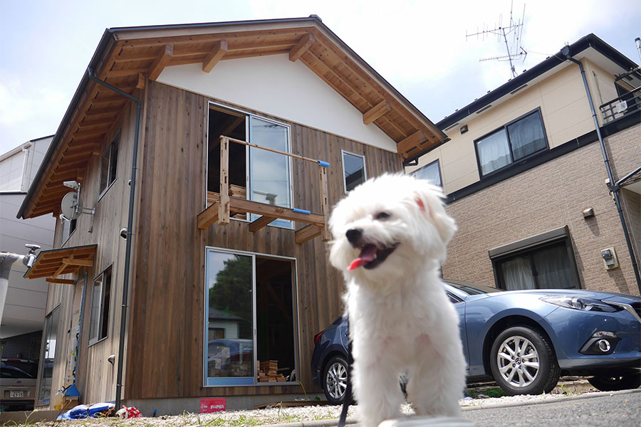 お家の前でうれしそうなまる。