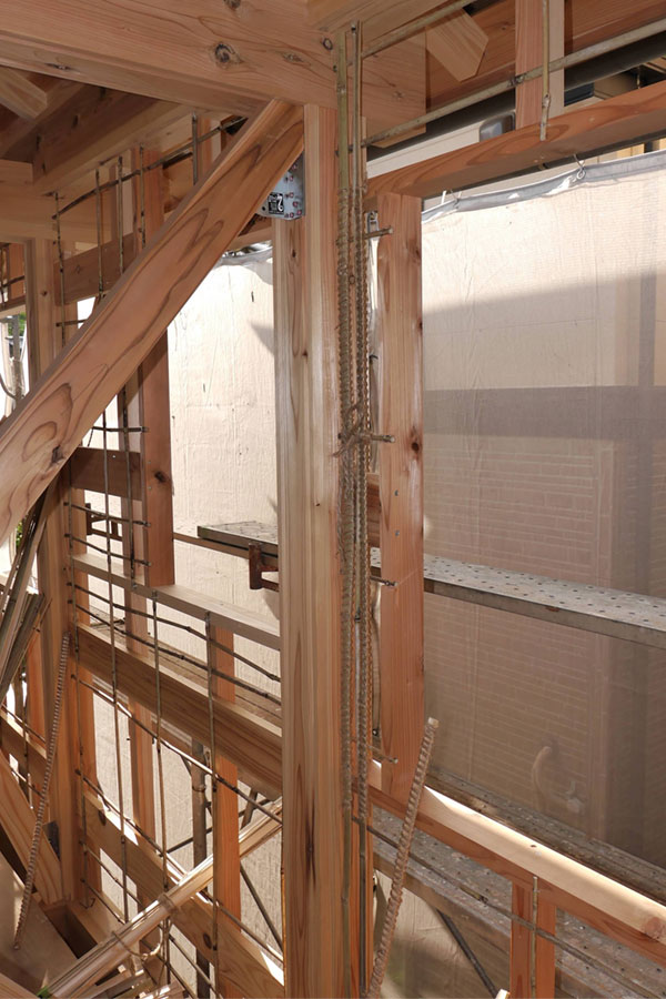 屋根の下の三角の妻壁部分の小舞は棟梁自ら