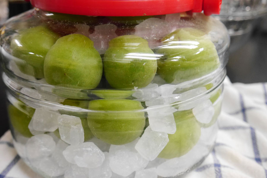 二日目ぐらいに水が出てきたら、毎日2〜3回、水が梅全体に回るようにくるくると瓶を回してください。2週間ぐらいで出来上がります。半年ぐらいを目処に使い切ってください。
