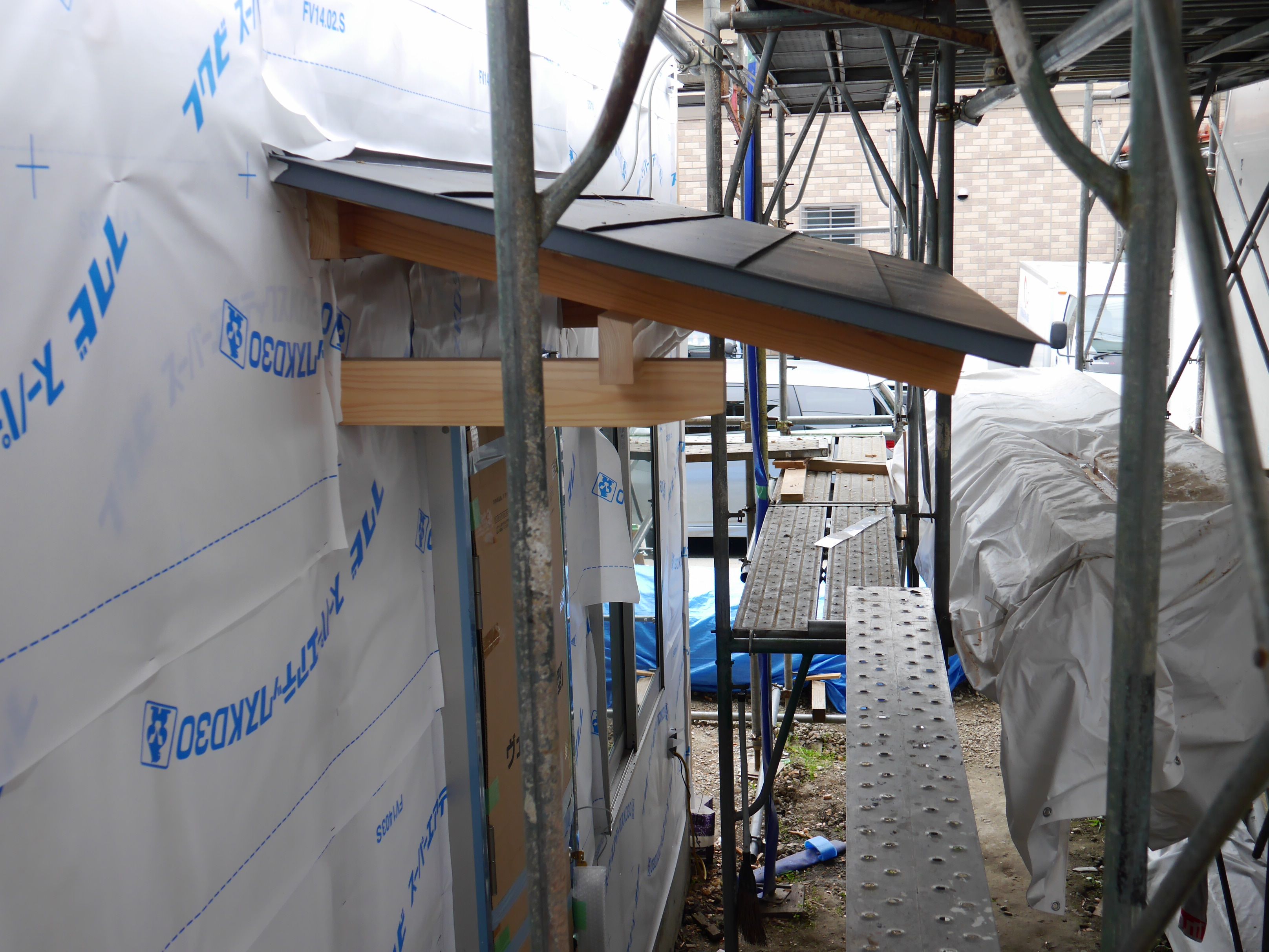 外壁工事が始まりました。こう見えて外断熱・蓄熱性の最新住宅です。 【伝統建築現場レポート】外壁の下地工事 2014年6月5日 2014年7月3日 ton-tan 22世紀の古民家を造る, 我家の家造りレポート Tweet 外断熱の外壁ができるまで 南面に断熱材を張りました。写真に写ってるのは透湿防水シートです。蒸気と空気は通しますが、水分は通しません。なので、壁面内部はカラッとしてカビを防ぎます。このあと胴縁で押えて杉板を縦に張って外壁完成です。後日、そこまで詳しくレポートします。 玄関の軒に屋根板が張られてました。屋根板と同じガルバリウム鋼板です。 玄関の軒も木組みでかっこいいんです。下から見上げると昔見た噺家さんの家みたい。和の素敵な家でした。 軒と一階と二階の窓が複雑です。一枚の板野幅の部分に窓との木がすべて集まっているので、この部分の手間はとても大変そうです。 しっかりしたベランダの秘密= 割りくさび 2階のベランダの手すり。床から突き出た梁に継手でしっかり組み合っています。突き刺さっているのは割りくさび。梁を通している穴の半分が外側に広がっていて、くさびを打つって内側の木が外に広がり、しっかり抜けなくなります。ベランダの安全性を高めています。 しっかりしたベランダ。柱の穴に手すりが付けられて、この上にすのこ状の床が張られて、ベランダの出来上がりです。 屋根屋さんがベランダにもちゃんとカバーを。細かいところまで丁寧です。雨で木がいたまない工夫です。 足場があるので分かり難いですが、ベランダはこんな感じ。木造の家にマッチしたベランダです。朝が楽しみです。 蓄熱性に優れた土壁 この土壁が外断熱の内壁で、蓄熱性があるので夏は冷房の涼しさ、冬は暖房の暖かさを蓄えます。 もし、外断熱でなかったら、夏は暑さ、冬は寒さを蓄えます。外断熱の無いコンクリート住宅は大変です。 続きの説明は次ページへ 1 2 3 4 Tweet 関連 伝統構法住宅土壁家建てる建築木造