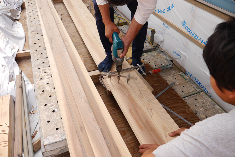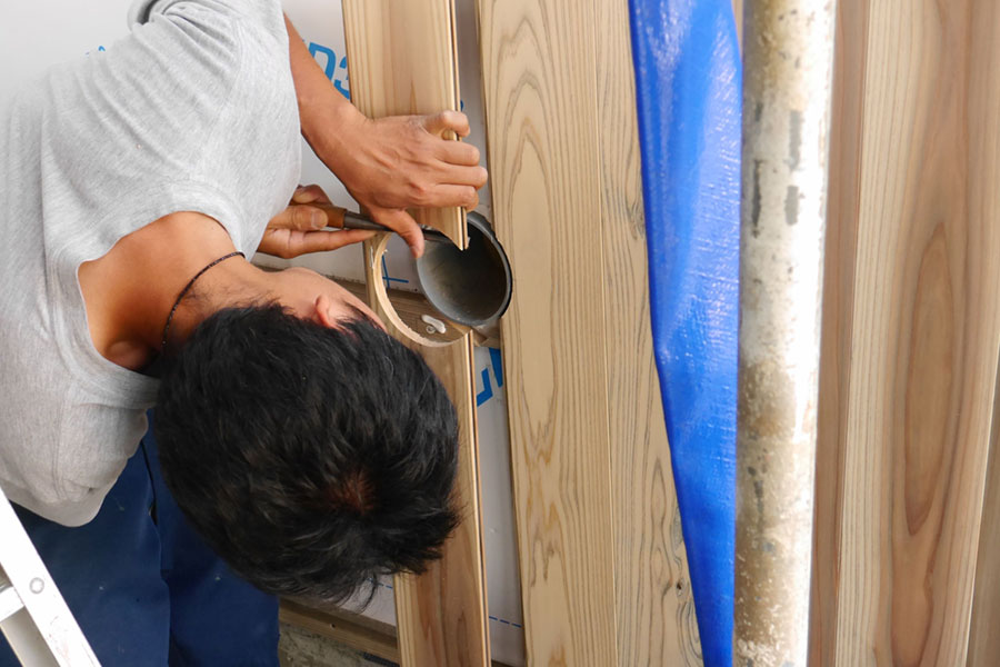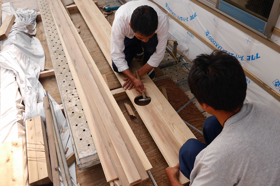 伝統構法の家造りは現場で一つ一つの部材を切り出し削り出していくからこそ、寸分違わず板や柱が組み合わされていきます。高価な伝統家具の職人と同じことを家のサイズでやっているのですね。