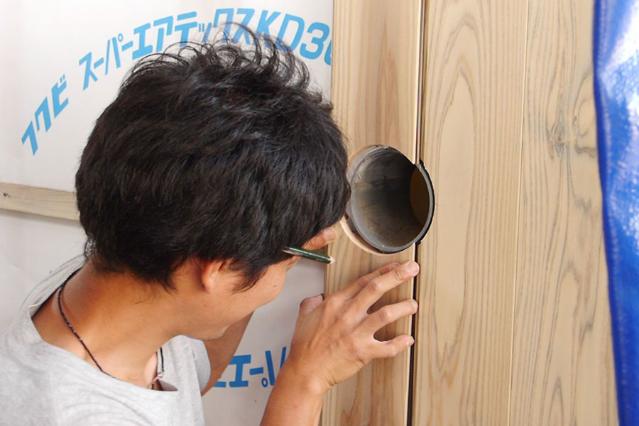 伝統構法の家造りは現場で一つ一つの部材を切り出し削り出していくからこそ、寸分違わず板や柱が組み合わされていきます。高価な伝統家具の職人と同じことを家のサイズでやっているのですね。