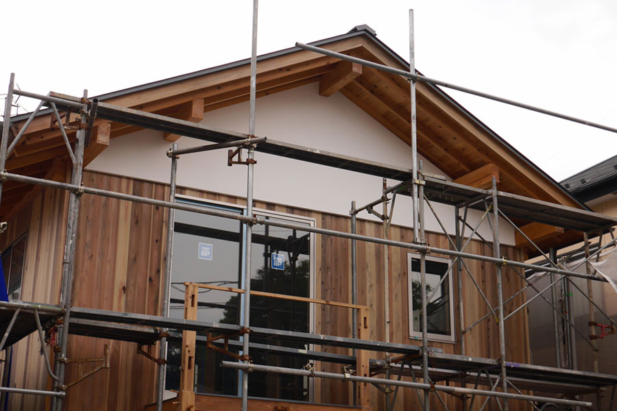 南面の外壁も張り終わり、我が家の外壁工事完成です。