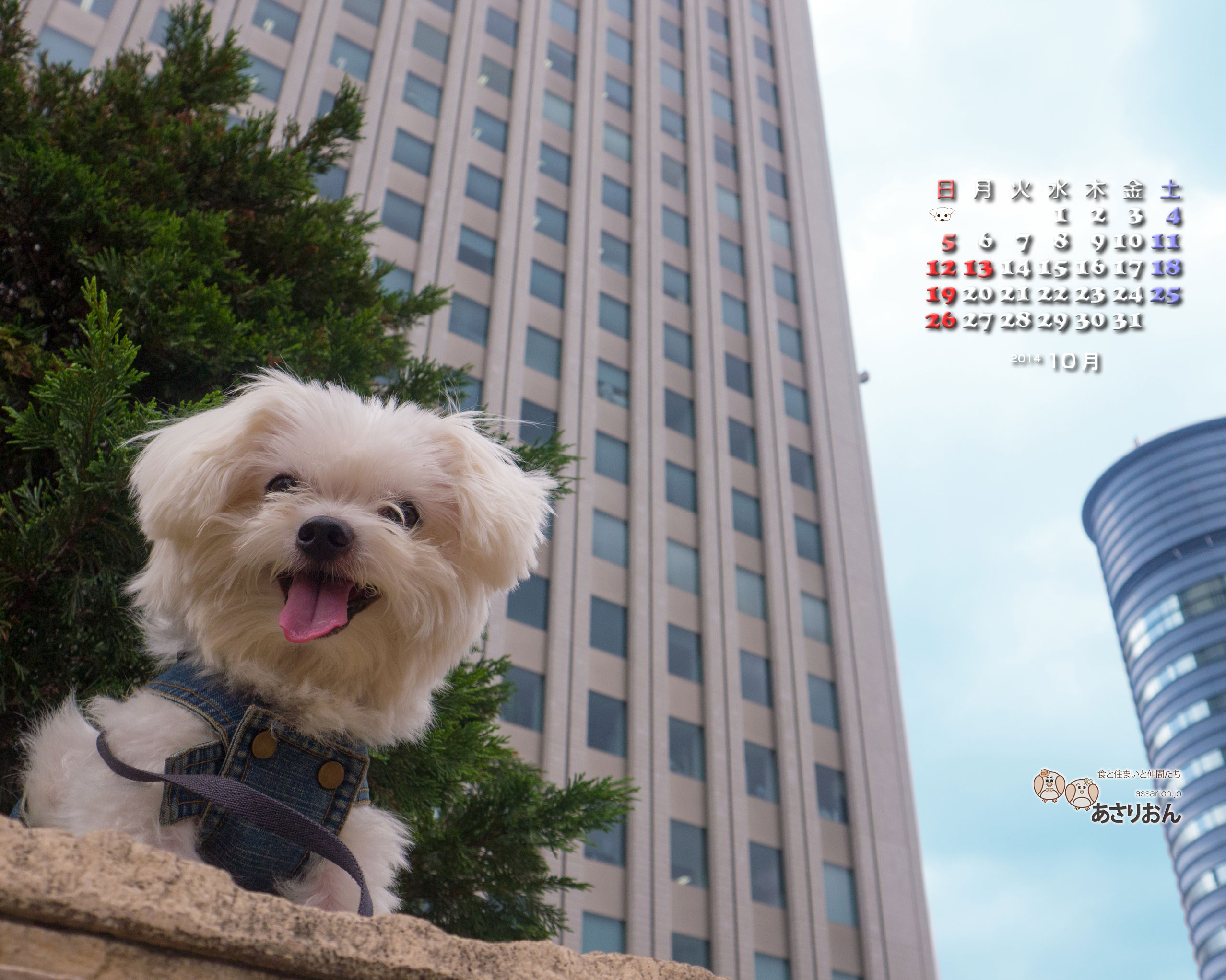 あさりおんの看板犬まるのカレンダー第6弾!10月のカレンダーを作りました。笑顔が可愛いまんまる君、MacやPCのデスクトップに、iPhoneやAndroidの待ち受け画面に飾ってやってくださいね。