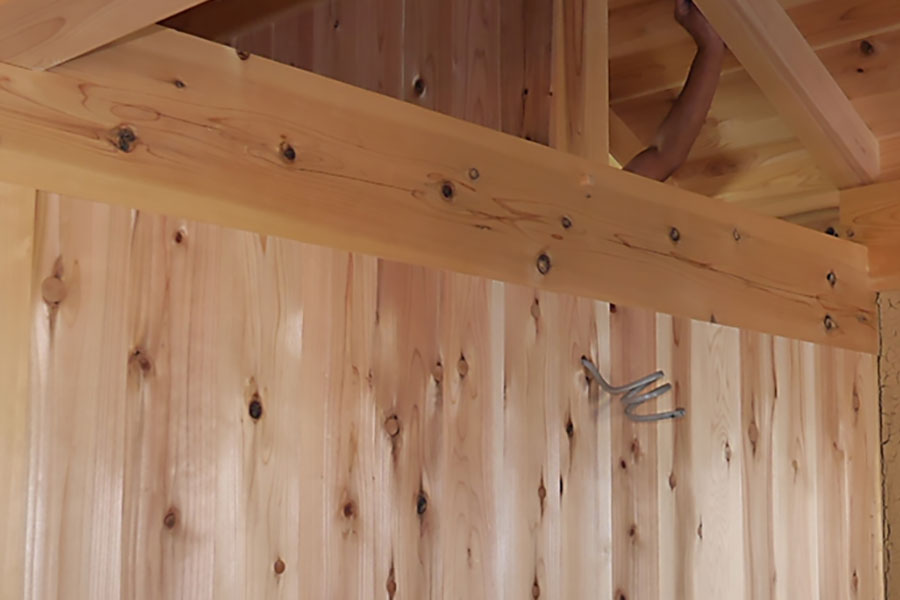 よく見ると柱と壁板が真っ直ぐにそろえてあります。大工さんと棟梁のこだわりです。