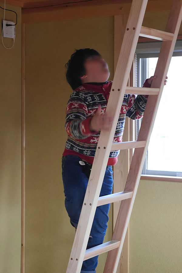 あとから続々男の子たち登場!ロフトや二階でキャアキャアと叫び声、階段も含めて我が家はジャングルジムに匹敵する面白さがあるようです。キャットウォークのような2階の梁の上には危ないから登らないでね!と大人はヒヤヒヤ!