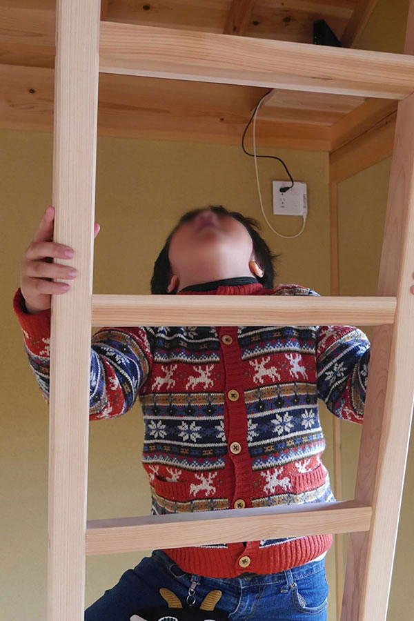 あとから続々男の子たち登場!ロフトや二階でキャアキャアと叫び声、階段も含めて我が家はジャングルジムに匹敵する面白さがあるようです。キャットウォークのような2階の梁の上には危ないから登らないでね!と大人はヒヤヒヤ!