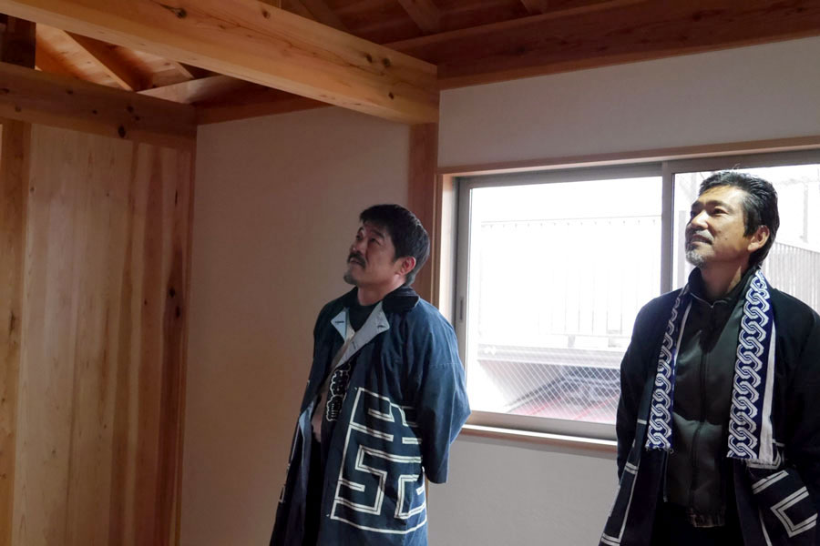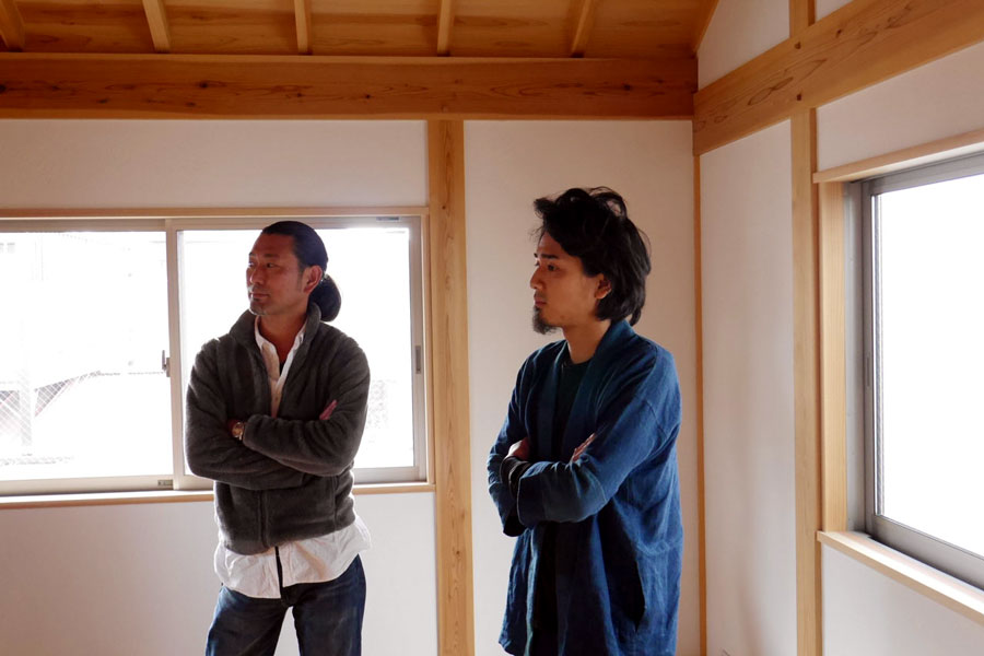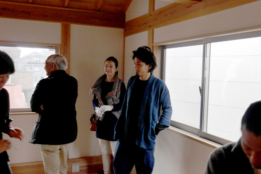 施主と設計士さん、新しい家で嬉しそう。