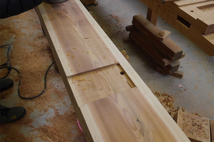 今度建てる家は「く」の字型に真ん中で曲がっているので、継ぎ手も曲がっていたり、真っすぐに組んでいなかったりとかなり大変な作業。「大変だけど面白いのでは?」と聞くと、「大変です」ときっぱり。でも黙々と邪魔なカメラマンにちょっと協力してくれつつ、作業を続けていく皆さんでした。