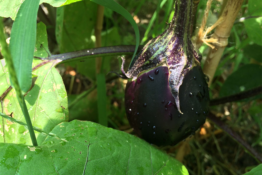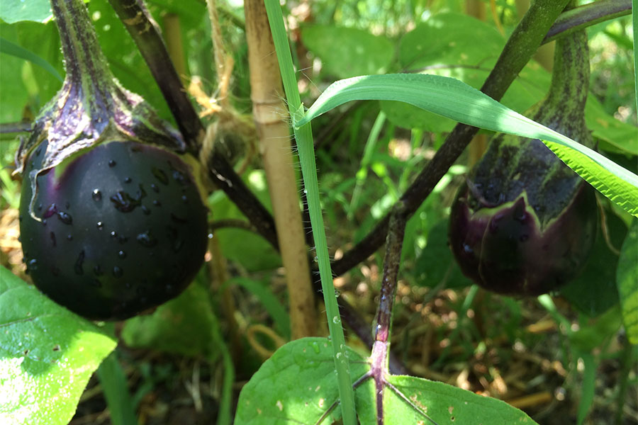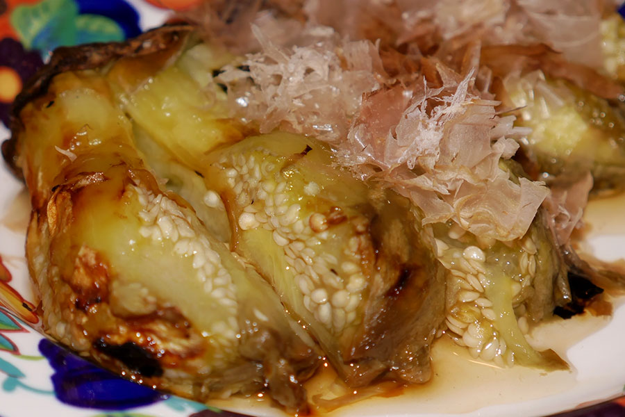 本文中でレポートできなかった、茄子。初物は焼き茄子に!シンプルな料理が良いだろうとグリルで焼いておいしくいただきました。いままで食べた事のないような美味しい茄子です。たっぷり汁を含んだ果肉。オクラのようにとろっとした不思議な果汁の食感。味も豊かで甘すぎるわけではないけど、甘みを感じる美味しさでした。