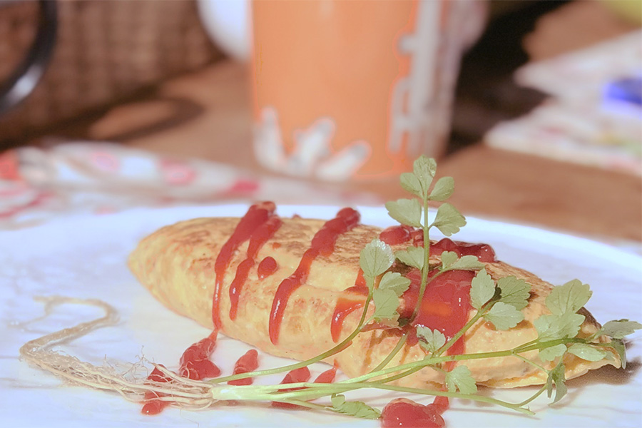 - 卵をくるっとひっくり返して、オムレツに…。